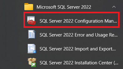 Now we can take a look at the SQL Server instance we just created using the SQL Server 2022 Configuration Manager. Locate that now in the Windows Start Menu and click it.
