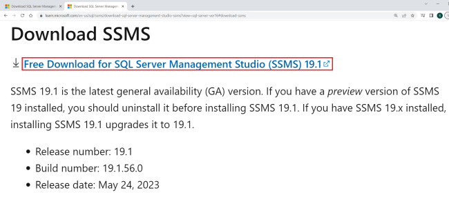 Click the “Free Download for SQL Server Management Studio (SSMS) 19.3” link.
